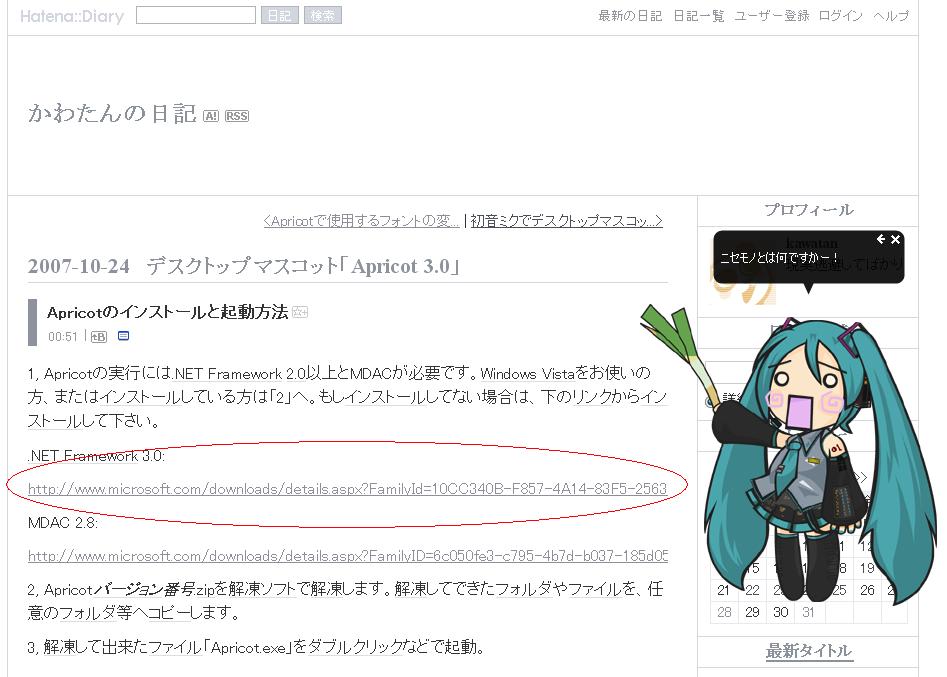 で、いよいよ”はちゅねみくのデスクトップマスコット”をダウンロードするわけだが、