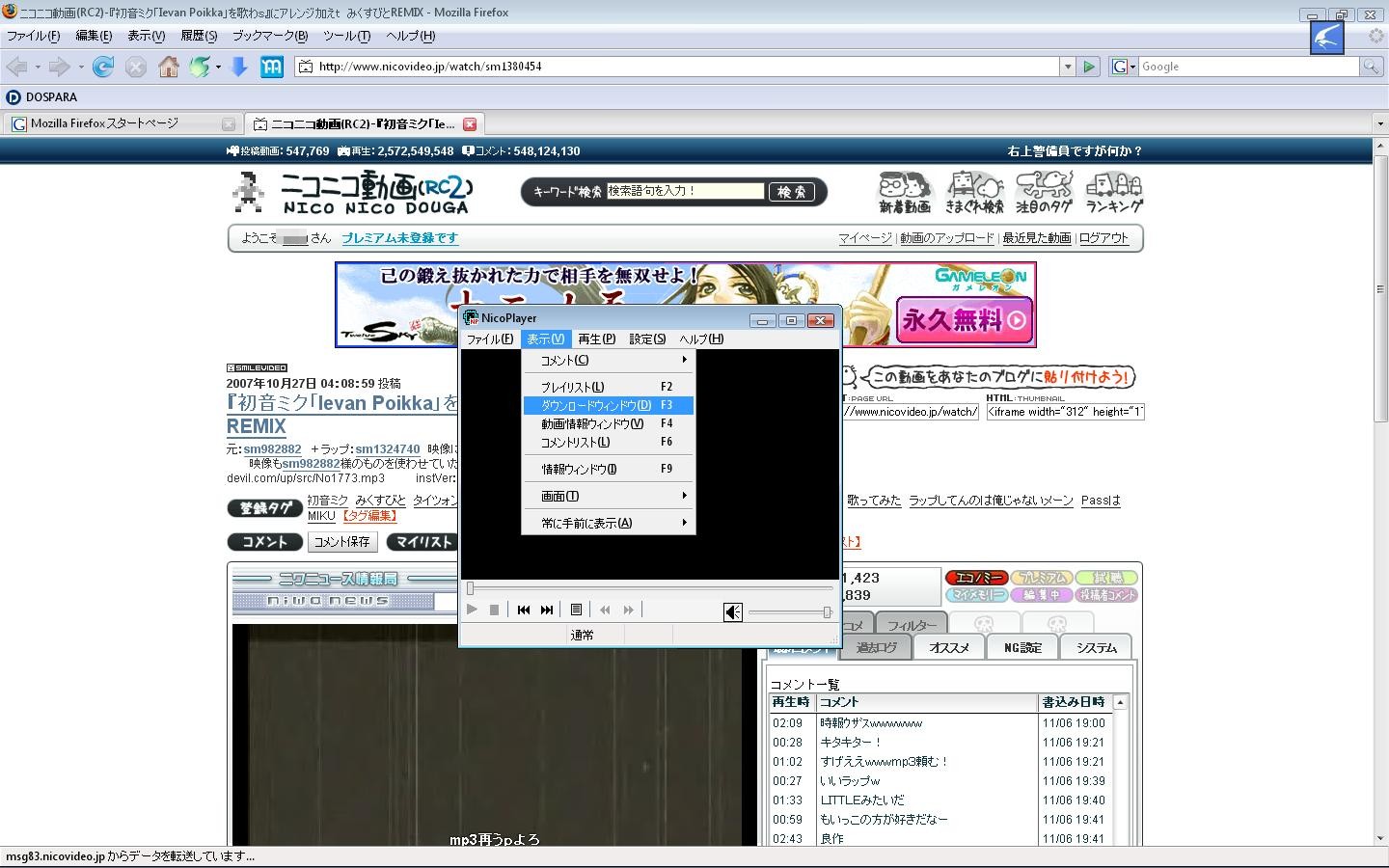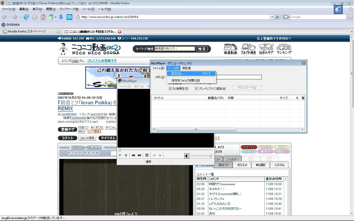 ここの永劫回帰ってサイトで NicoPlayer を配布してくれてるのでゴー