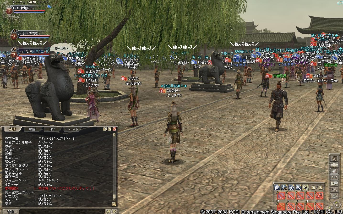 と、ここでパシャパシャとSS撮ってたら、大声で魏軍のパレードがやってきてるとのこと