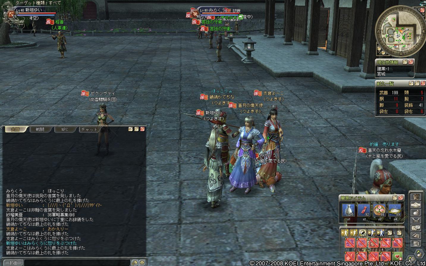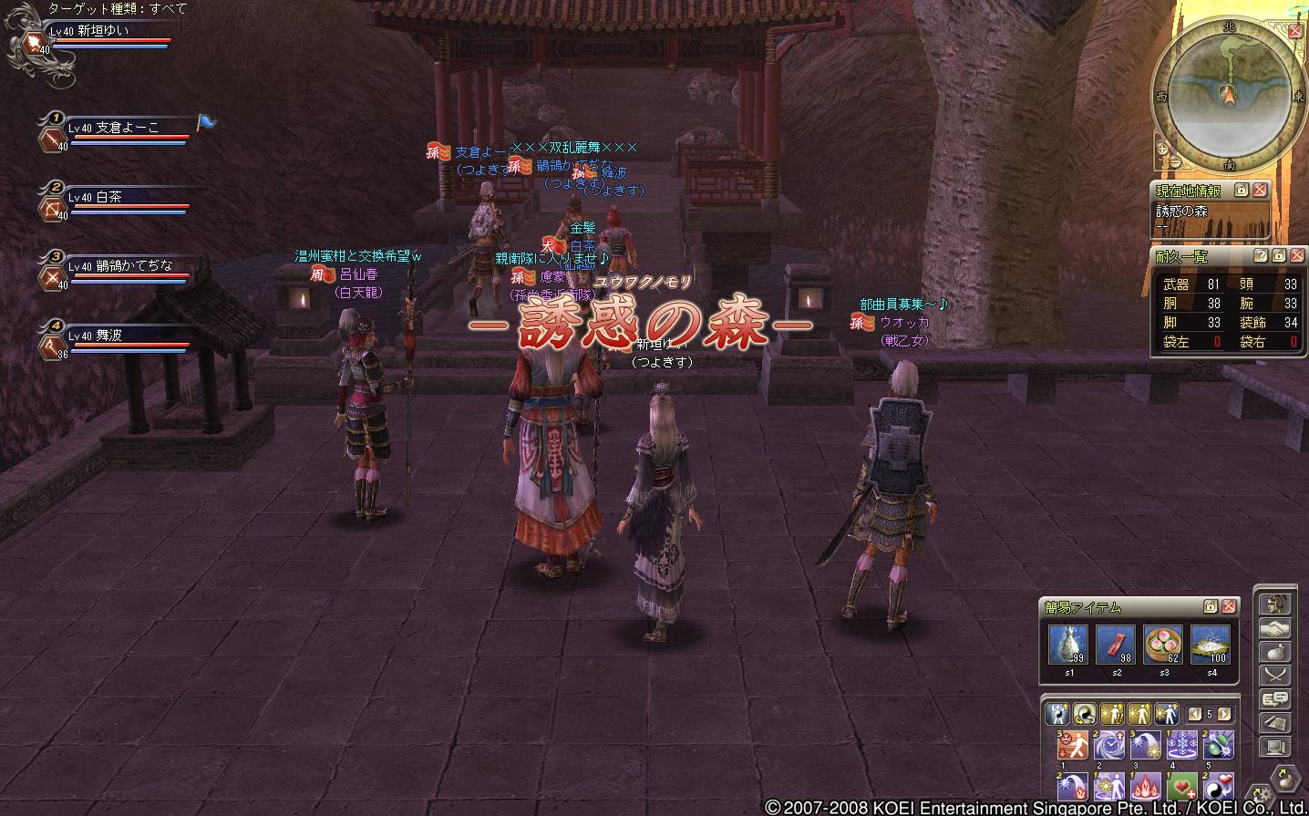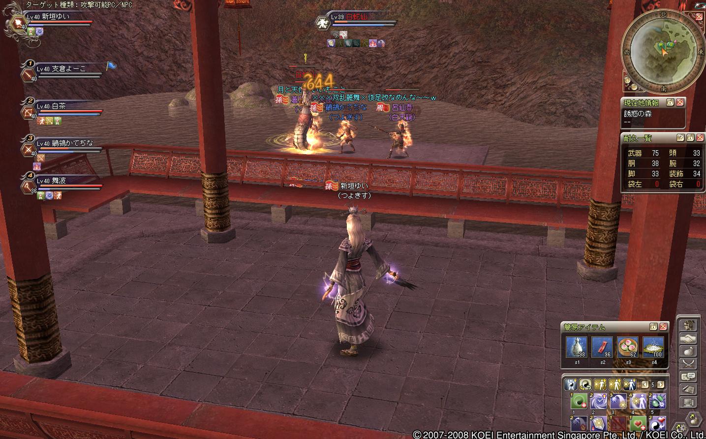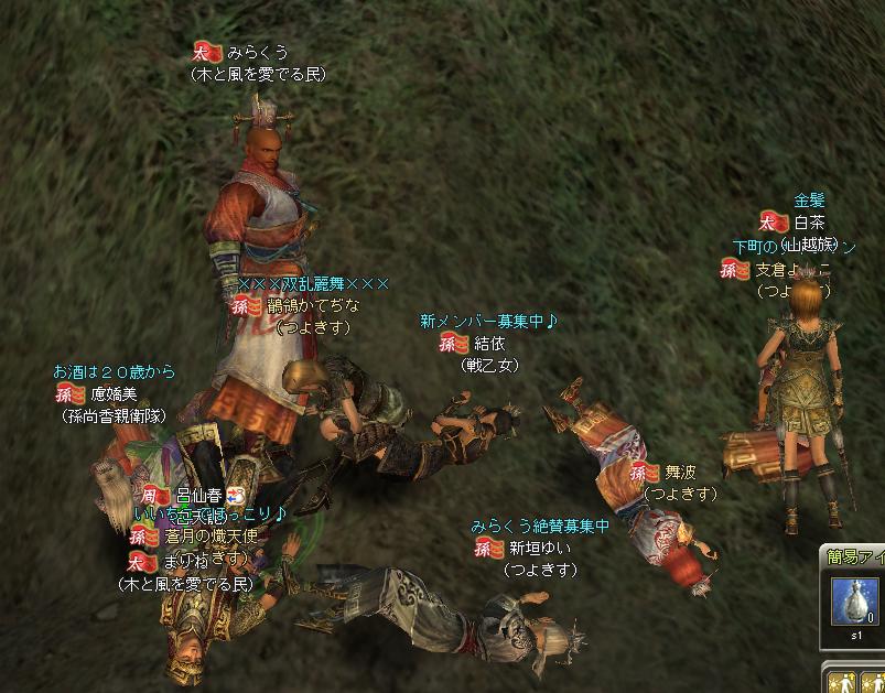 蜀の部曲で遊びにきた、レベル20ちょいくらいの徒党でした(もう少し高い人もいたけどねー