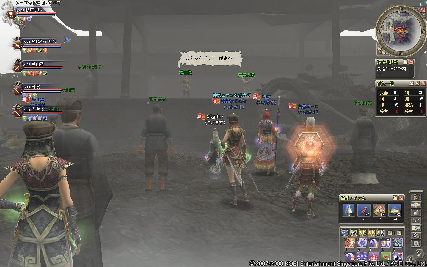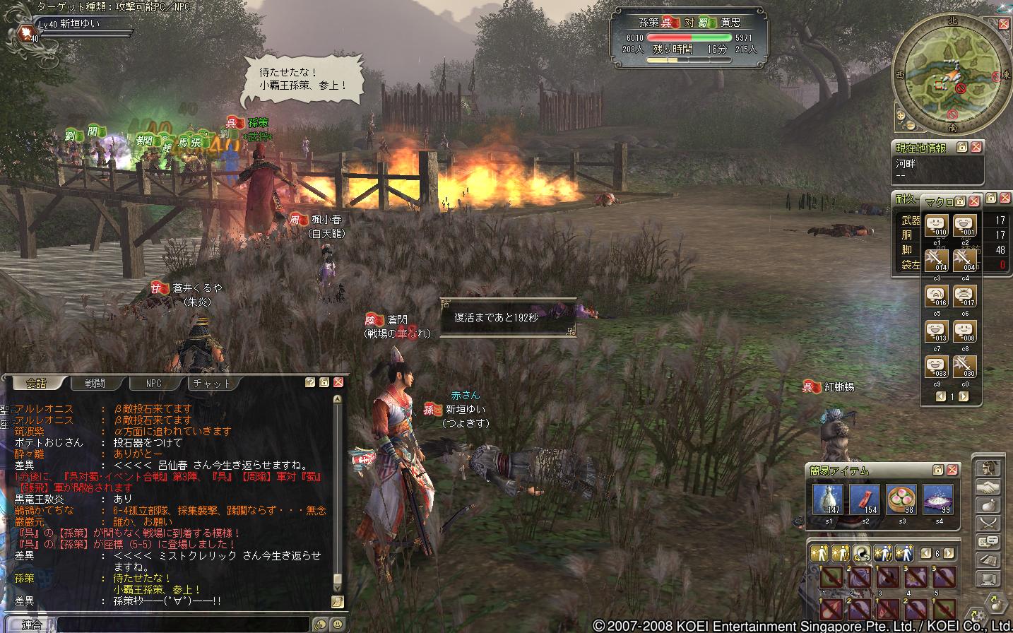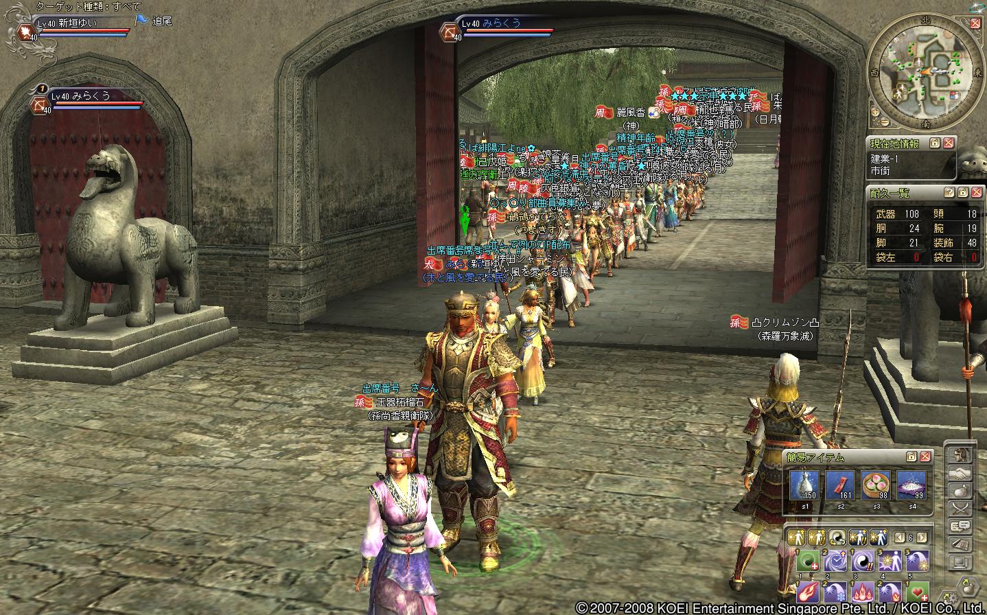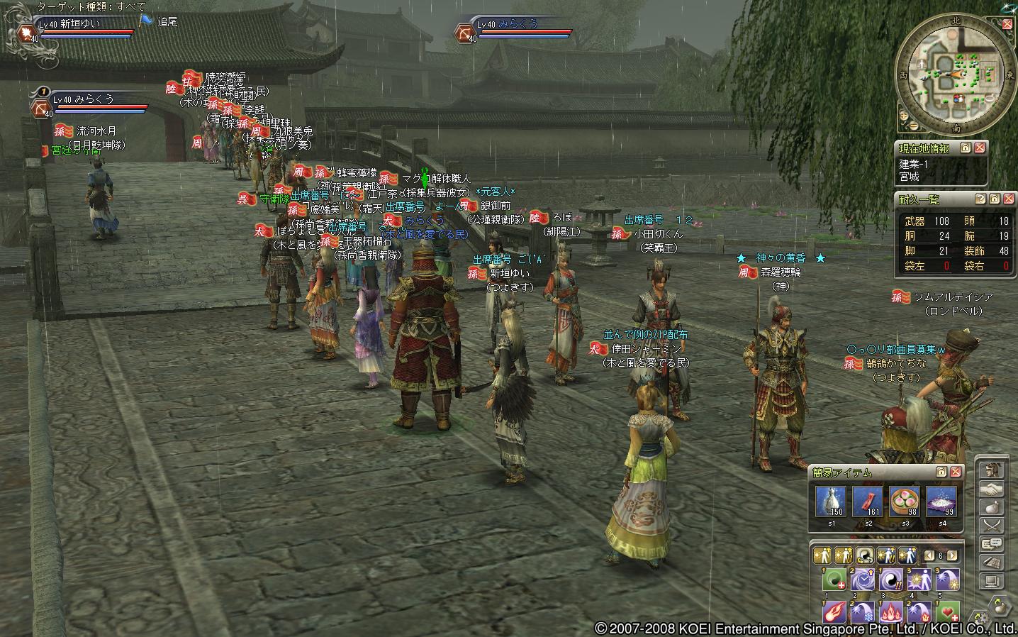 蜀の部曲で遊びにきた、レベル20ちょいくらいの徒党でした(もう少し高い人もいたけどねー