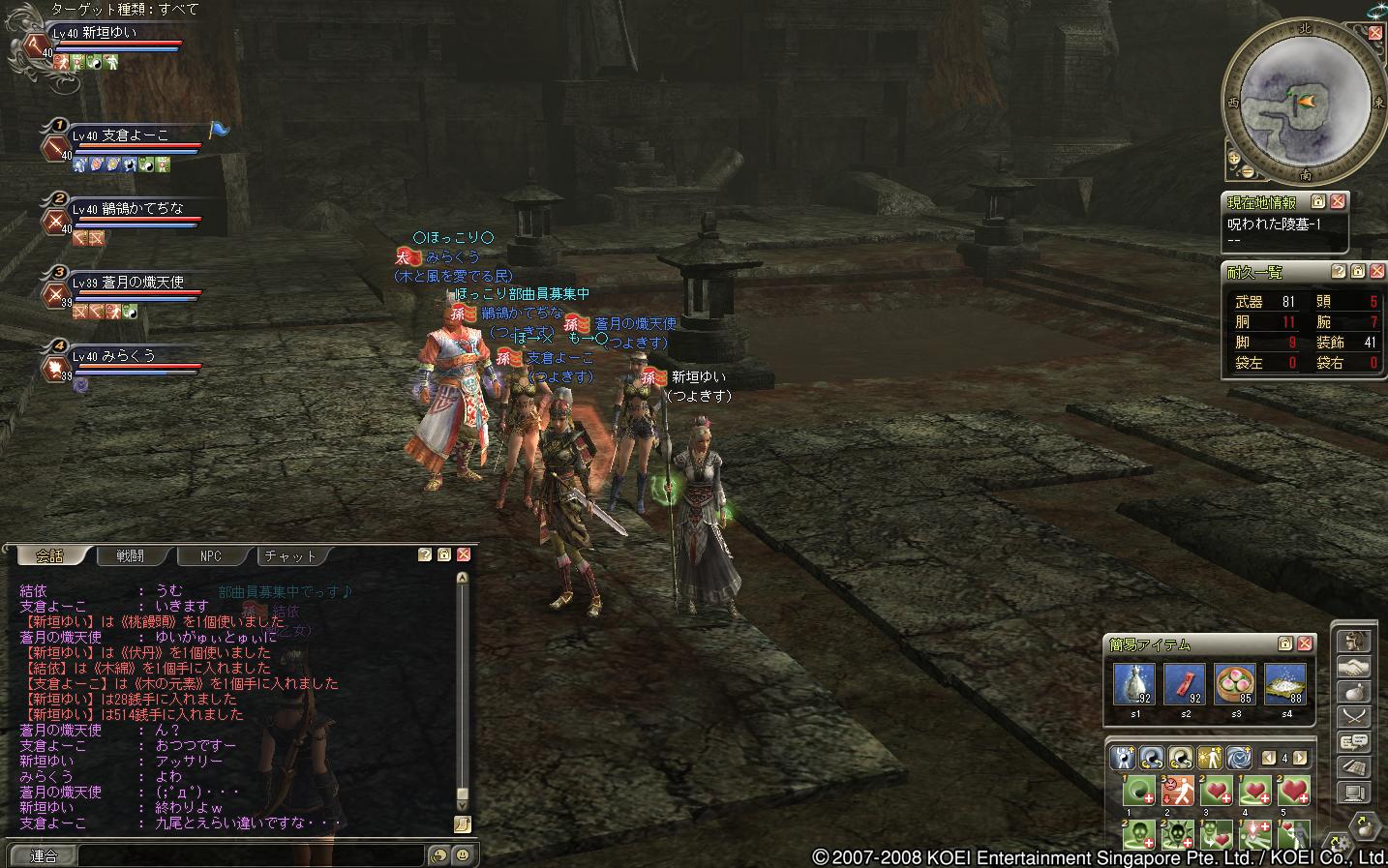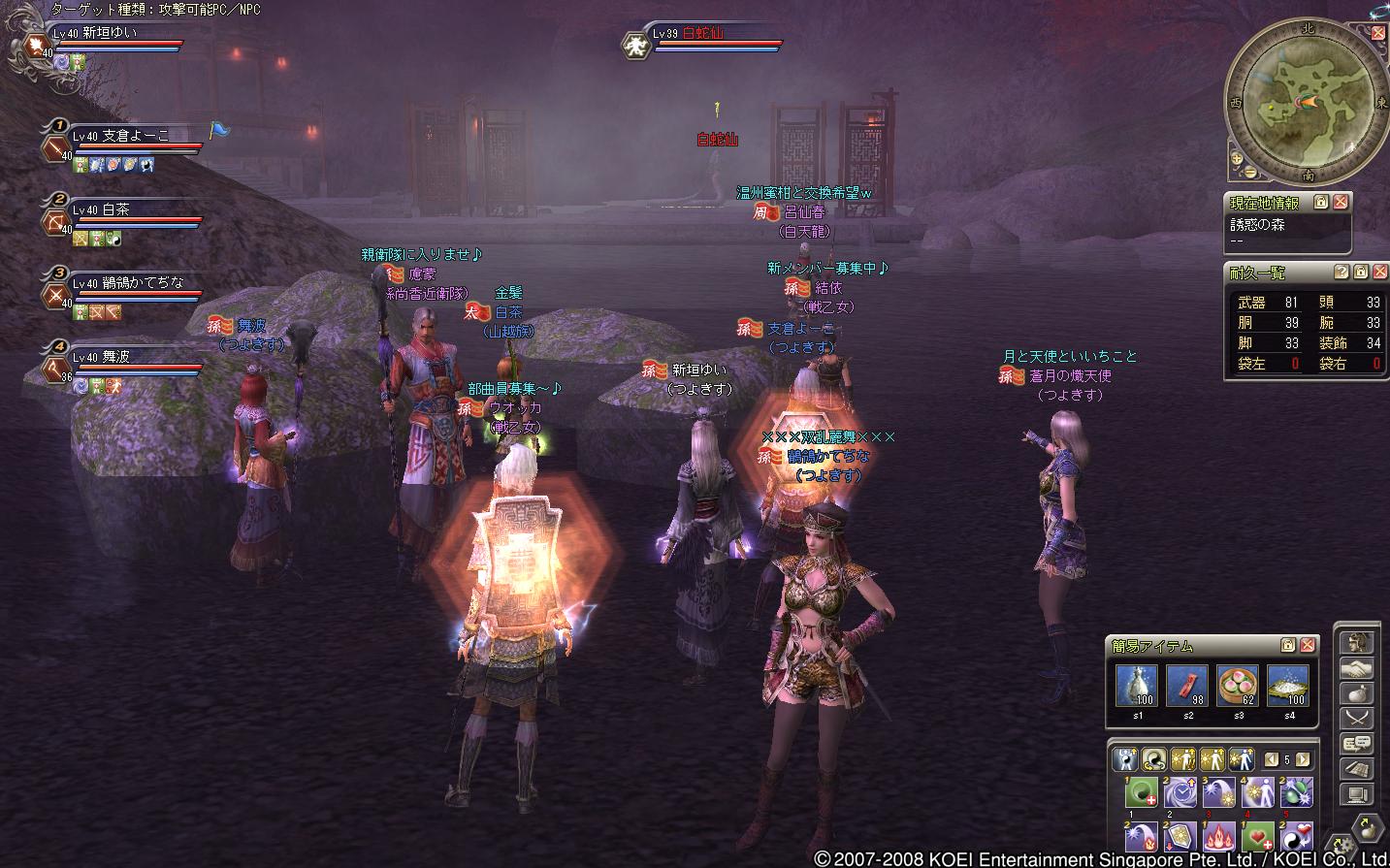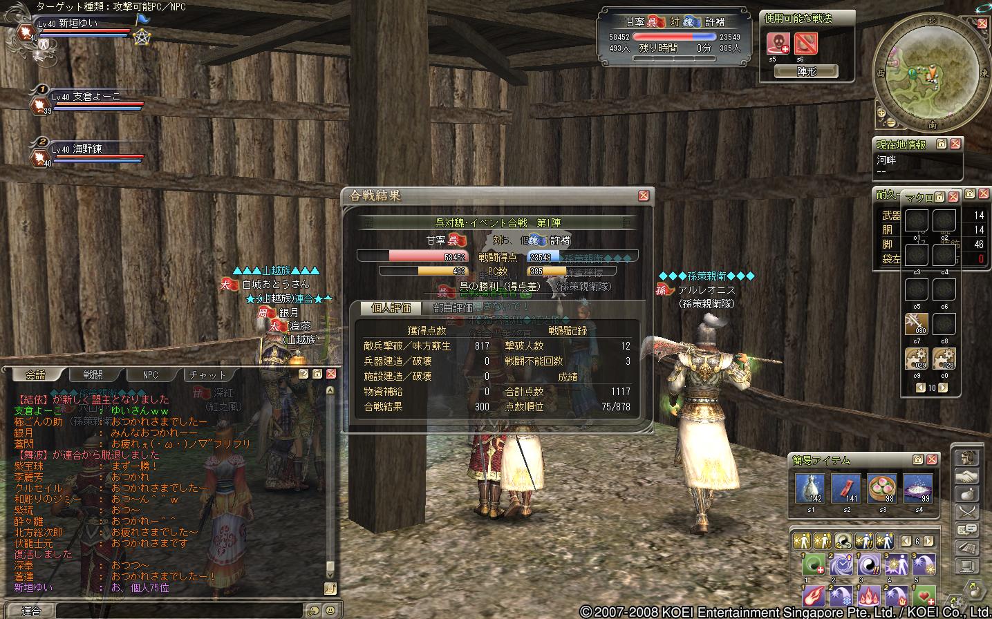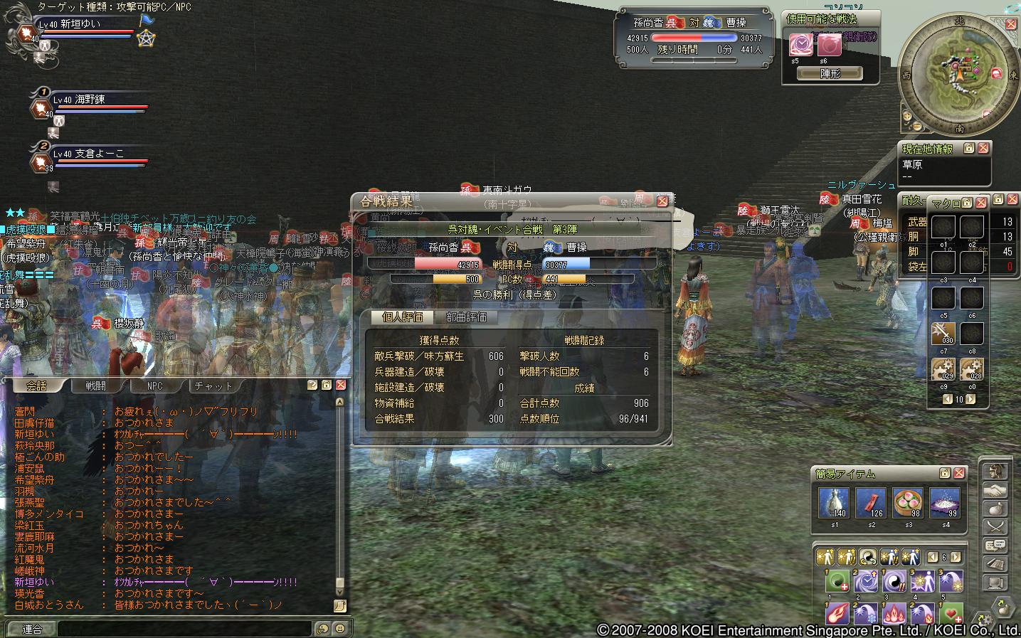 蜀の部曲で遊びにきた、レベル20ちょいくらいの徒党でした(もう少し高い人もいたけどねー